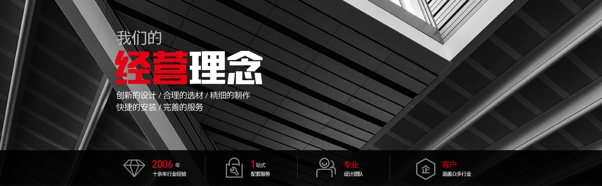 誠(chéng)信是我們賴(lài)以生存的根本。創(chuàng)新的設(shè)計(jì),合理的選材,精細(xì)的制作,快捷的安裝,完善的服務(wù)是我們也就不變的經(jīng)營(yíng)理念。我們竭誠(chéng)為您提供中******,個(gè)性化,創(chuàng)意性的作品,我們不斷進(jìn)取,努力今天的同時(shí)也在發(fā)展未來(lái),期待與您結(jié)成事業(yè)上的好伙伴,共圖發(fā)展!